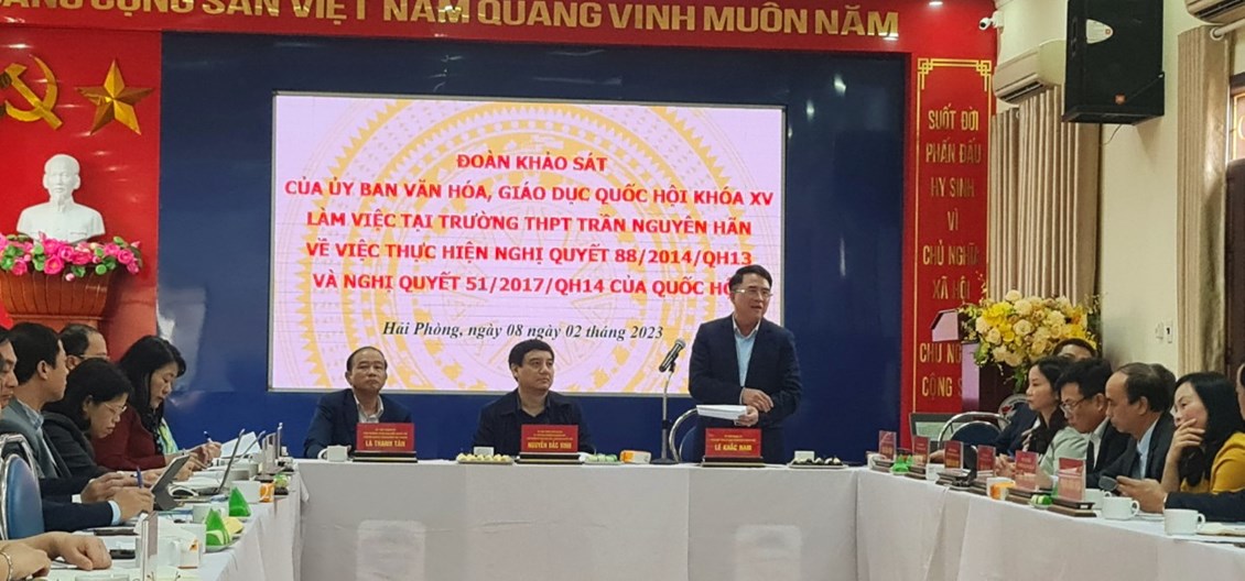Đoàn công tác ghi nhận sự tâm huyết quyết tâm của các thầy cô giáo trường THPT Trần Nguyên Hãn nói riêng và ngành giáo dục đào tạo thành phố Hải Phòng nói chung trong việc triển khai, thực hiện CT GDPT 2018. Chủ nhiệm Ủy ban Văn hóa Giáo dục của Quốc hội Nguyễn Đắc Vinh cho biết sẽ tiếp thu những đề xuất của thành phố, đồng thời kiến nghị Chính phủ xem xét, trình Quốc hội hoàn thiện thể chế, chính sách, tạo hành lang pháp lý thực hiện đổi mới căn bản, toàn diện GD-ĐT, tạo đà để Hải Phòng thực hiện tốt sự nghiệp đổi mới giáo dục, trước mắt là thực hiện tốt Chương trình giáo dục phổ thông mới.