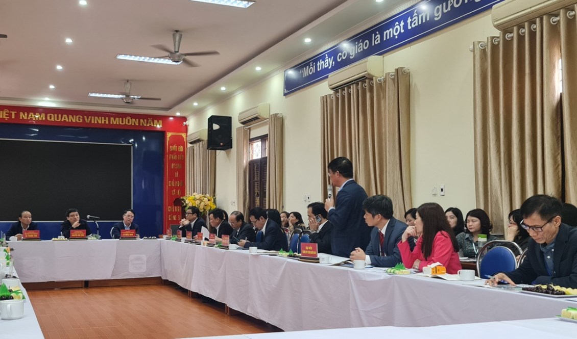 Sau khi khảo sát thực tế cơ sở vật chất, việc dạy và học tại trường THPT Trần Nguyên Hãn, Đoàn công tác đã lắng nghe ý kiến của cán bộ quản lý, giáo viên nhà trường; lãnh đạo Sở GDĐT; lãnh đạo UBND thành phố về những thuận lợi, khó khăn khi thực hiện Chương trình GDPT 2018.