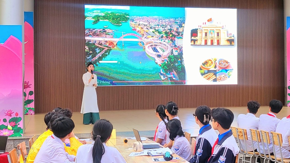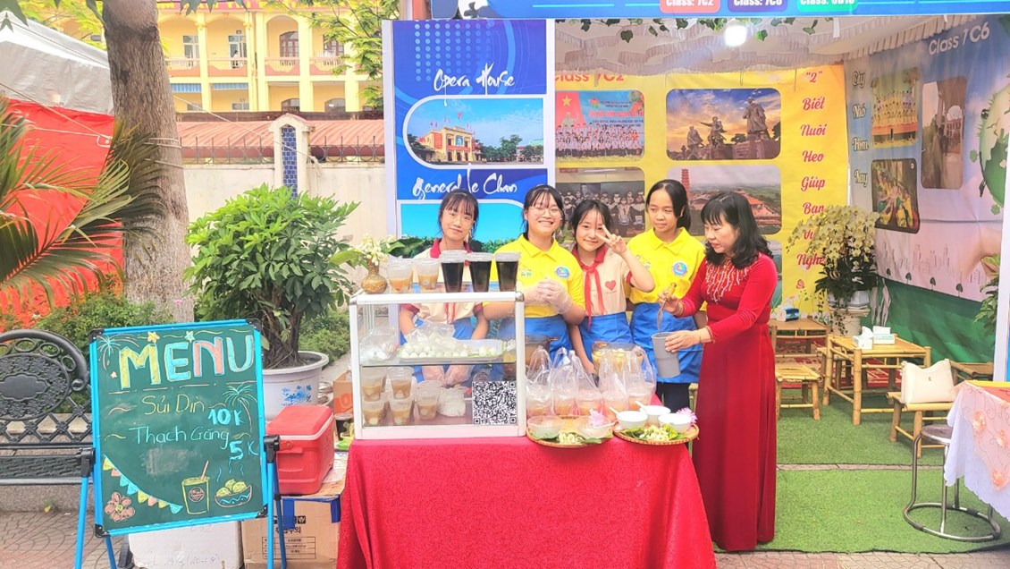 Sau nội dung báo cáo dự án học tập, học sinh được giao nhiệm vụ giải quyết tình huống về việc giới thiệu đặc sản ẩm thực Hải Phòng cho du khách. Học sinh trường THCS Đà Nẵng đã tự tin đóng vai tình nguyện viên quảng bá ẩm thực và sử dụng tiếng Anh để thực hiện nhiệm vụ. Phần hấp dẫn và được các học sinh mong chờ trong tiết học chính là hoạt động trải nghiệm trực tiếp thực hiện một khâu chế biến một món đặc sản ẩm thực. Cô giáo giao nhiệm vụ 3 nhóm thực hiện pha trà cúc, pha mắm chấm nem, gói nem. Do đã có quá trình tìm hiểu, trải nghiệm thực tiễn nên các em học sinh lớp 7 thực hiện rất tốt các sản phẩm thực hành.