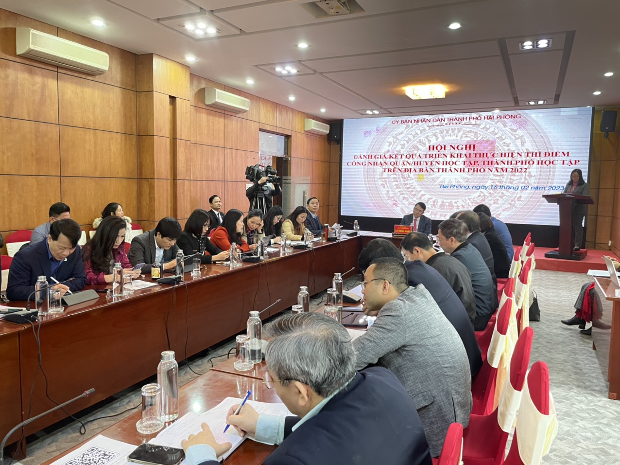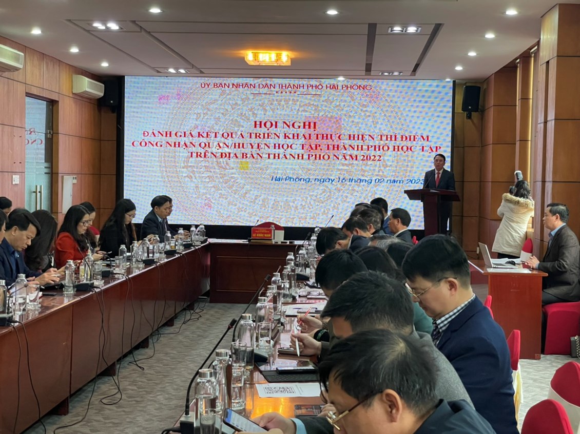 Sau một năm triển khai, Ban Chỉ đạo Phổ cập giáo dục, Xóa mù chữ, Xây dựng xã hội học tập - Dạy và học ngoại ngữ thành phố Hải Phòng đã khảo sát, báo cáo kết quả công tác thực hiện thí điểm công nhận quận/huyện học tập, thành phố học tập năm 2022. Theo đó, công tác trên đã được UBND thành phố, UBND quận, huyện quan tâm chỉ đạo sát sao đồng thời có sự vào cuộc tích cực của các Sở, ban, ngành, đoàn thể nên công tác thí điểm được thực hiện thông suốt từ thành phố đến cơ sở. Bước đầu có những kết quả đáng ghi nhận, trong đó nhiều địa phương đã phấn đấu hoàn thành một số chỉ báo ở mức cao. Đội ngũ cán bộ thực hiện nhiệm vụ triển khai công tác thí điểm mặc dù là cán bộ kiêm nhiệm, song có nhiều cố gắng, sáng tạo trong tham mưu, đôn đốc, kiểm tra, tổng hợp báo cáo theo quy định. Bên cạnh những ưu điểm, còn tổn tại một số hạn chế, khó khăn. Thời gian thực hiện mô hình thí điểm ngắn, năm đầu tiên thực hiện nên chưa có hướng dẫn, tập huấn cụ thể; chưa được phân bố kinh phí hoạt động, hệ thống trang thiết bị, cơ sở vật chất còn khó khăn;….