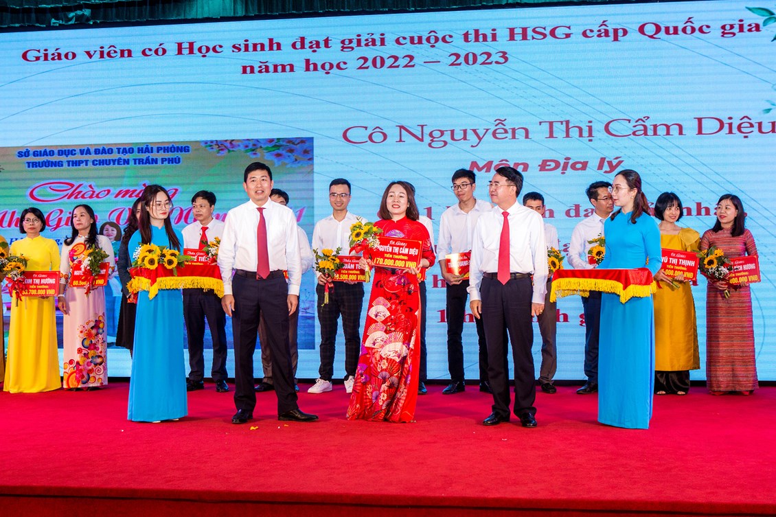 Năm 2018, Hội đồng nhân dân thành phố Hải Phòng đã ban thành Nghị quyết số 06/2018/NQ-HĐND quy định cơ chế chính sách trong phát hiện, đào tạo, bồi dưỡng học sinh giỏi, tuyển chọn, sử dụng, đãi ngộ đội ngũ giáo viên giỏi trong lĩnh vực đào tạo, bồi dưỡng học sinh giỏi quốc gia, quốc tế. Theo đó, các giáo viên và học sinh đoạt giải trong các kỳ thi chọn học sinh giỏi quốc gia, quốc tế, cuộc thi khoa học kỹ thuật quốc gia được nhận tiền thưởng theo mức giải đạt được. Học sinh đoạt giải Nhất được thưởng 50 triệu đồng, giải Nhì được thưởng 40 triệu đồng, giải Ba được thưởng 30 triệu đồng, giải Khuyến khích được thưởng 20 triệu đồng. Các thầy cô giáo phụ trách đội tuyển, các thầy cô giáo tham gia giảng dạy đội tuyển, các cán bộ quản lý trường học có học sinh đoạt giải đều được khen thưởng. Chế độ khen thưởng và đãi ngộ trên thể hiện sự quan tâm sâu sắc của thành phố đối với ngành giáo dục và đào tạo nói chung, đối với giáo viên và học sinh xuất sắc nói riêng. Điều này góp phần tạo động lực cho các nhà trường, các thầy cô giáo và học sinh phấn đấu trong các kỳ thi, cuộc thi cấp quốc gia quốc tế, mang lại thành tích cao cho thành phố.