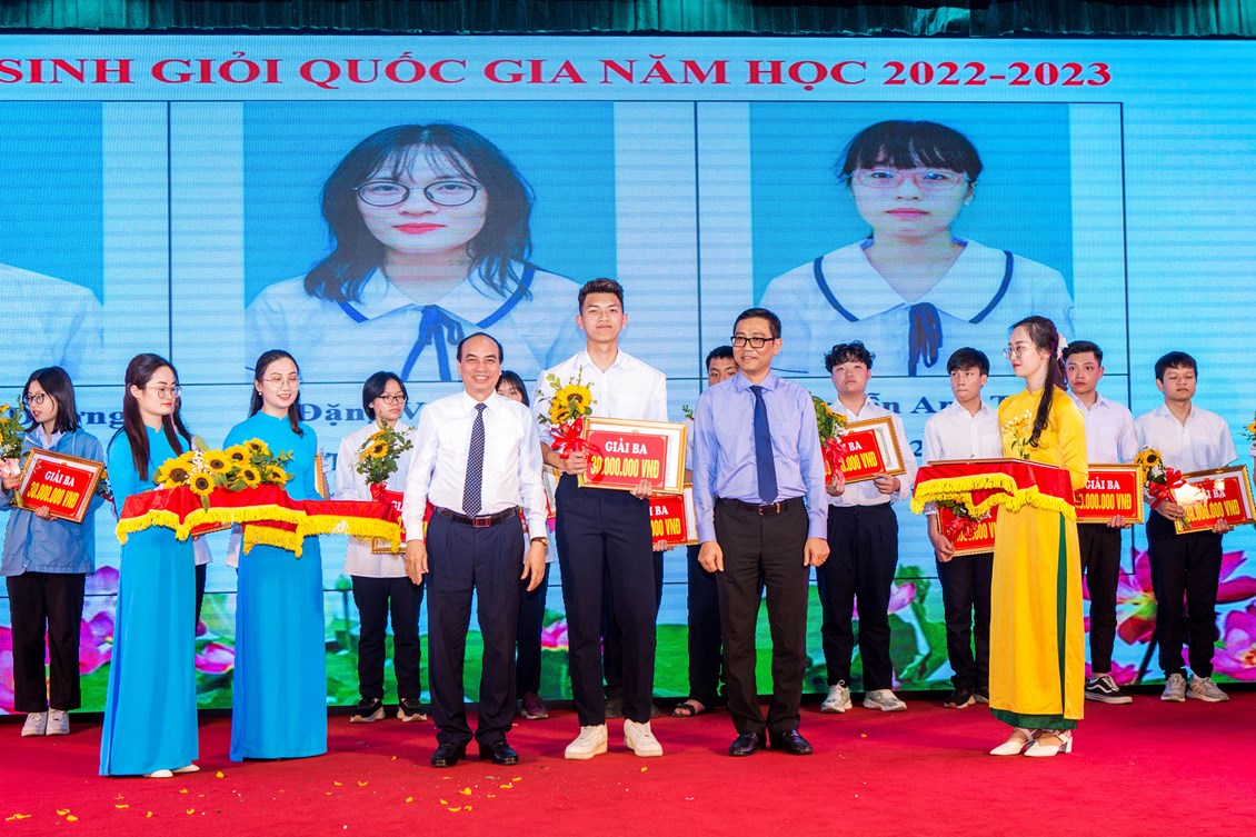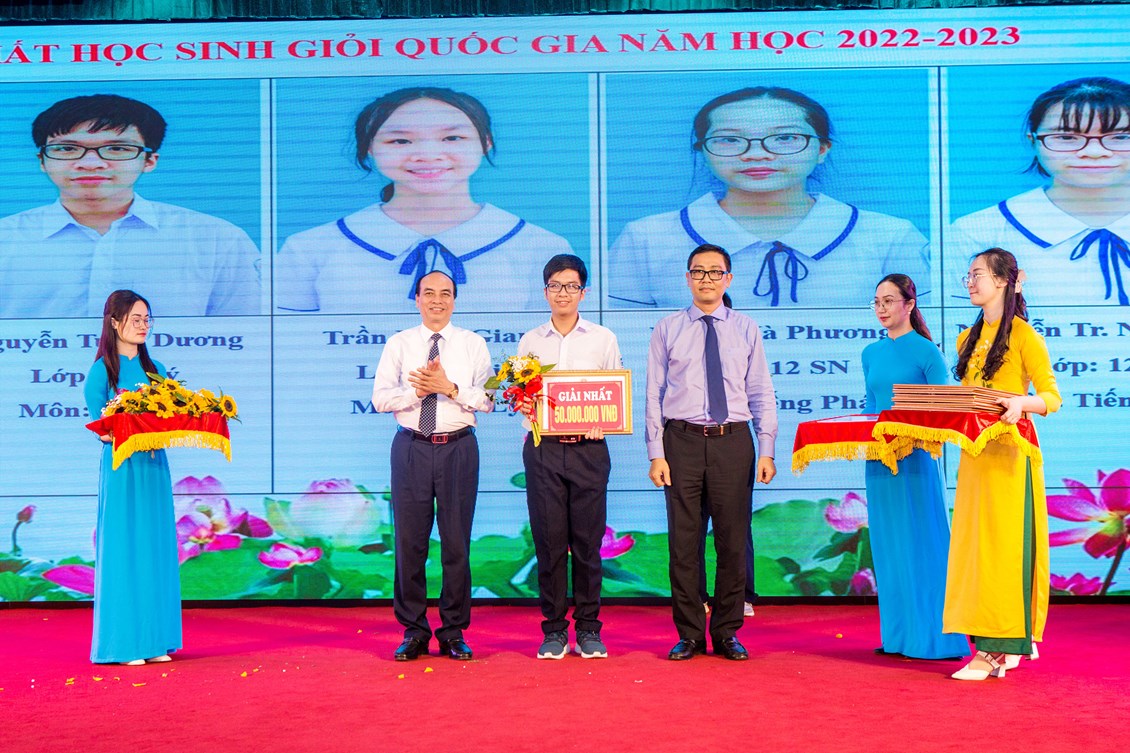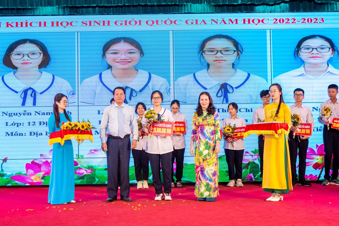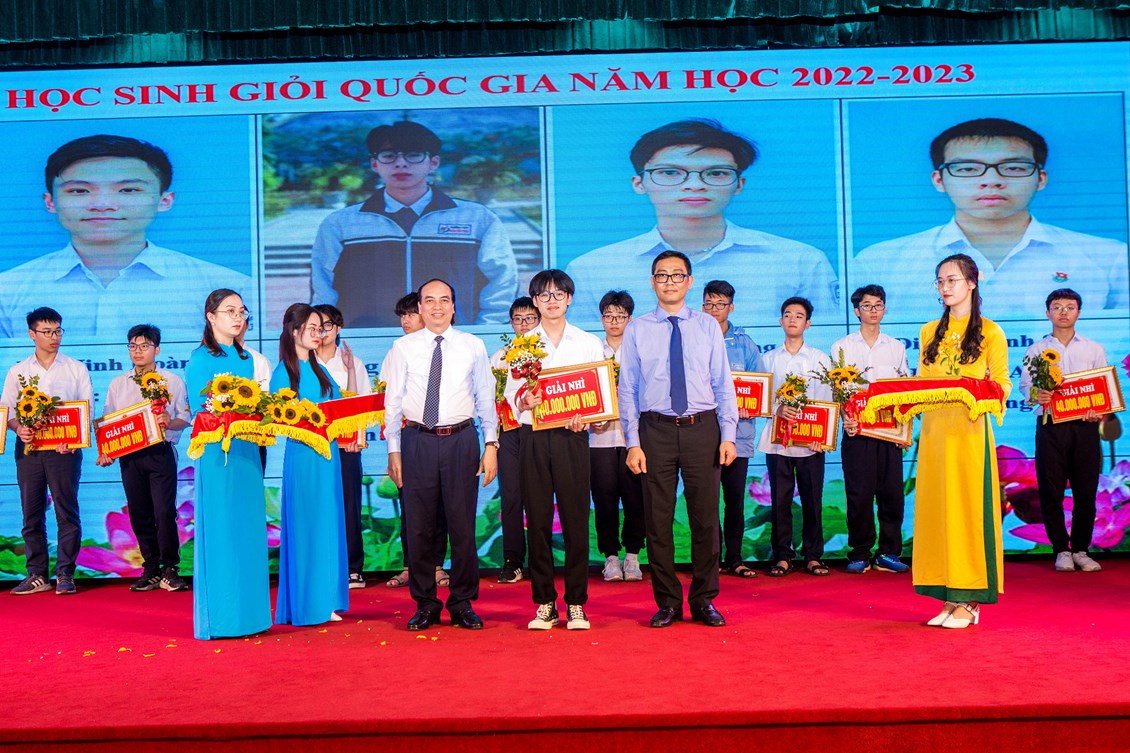 Lễ biểu dương, khen thưởng được Sở GDĐT tổ chức rất kịp thời, ngay sau khi có kết quả của các kỳ thi chọn học sinh giỏi quốc gia và cuộc thi khoa học kỹ thuật cấp quốc gia. Trong không khí tưng bừng, hân hoan của buổi lễ biểu dương, các đồng chí lãnh đạo thành phố và lãnh đạo Sở GDĐT đã tặng hoa, bằng khen và trao phần thưởng cho các giáo viên và học sinh: