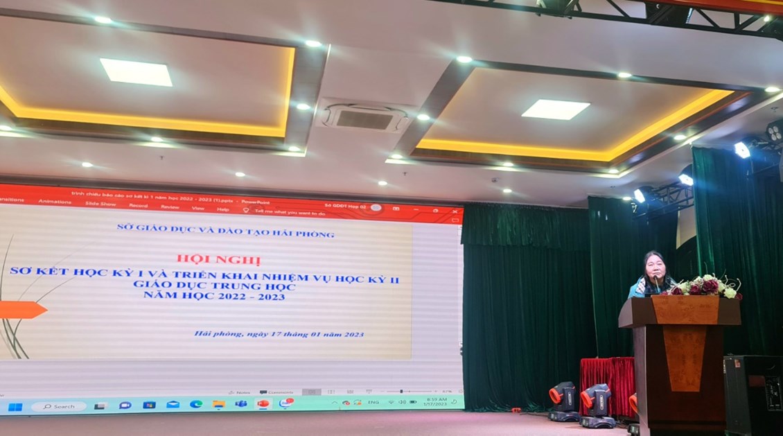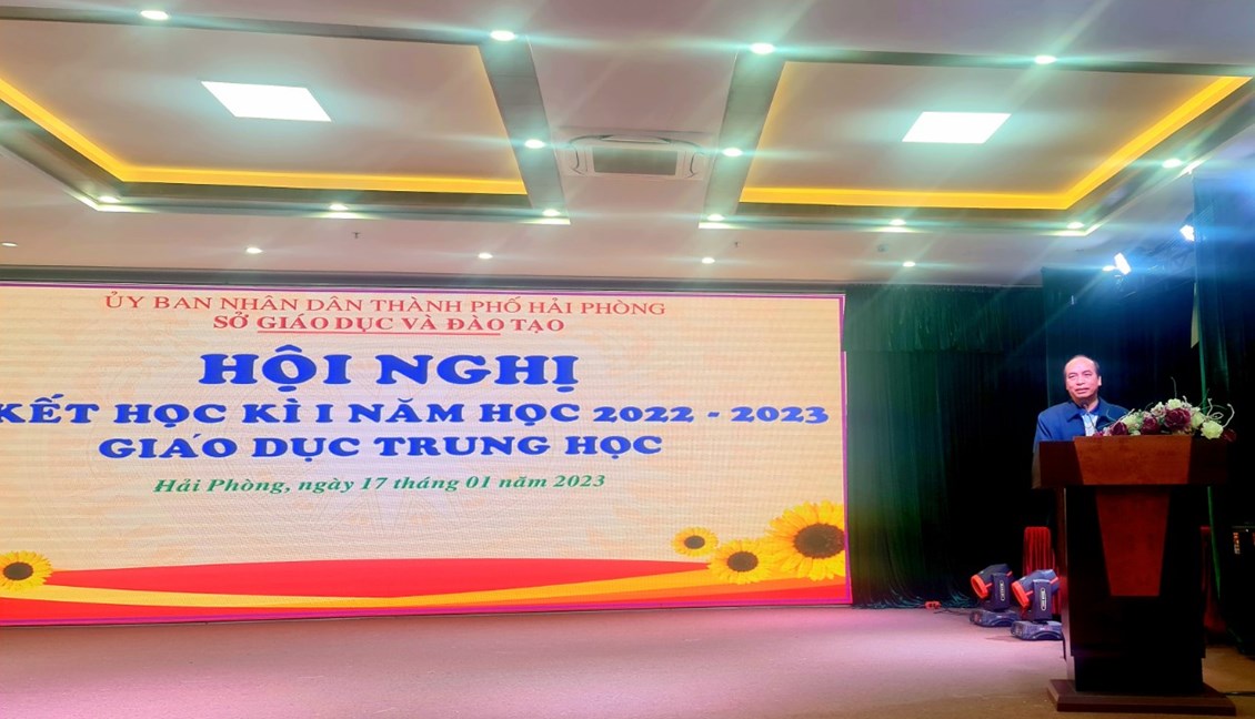 Tại Hội nghị, đồng chí Phạm Thị Thu Hà, trưởng phòng Giáo dục Trung học đã báo cáo sơ kết học kì I và nêu phương hướng nhiệm vụ của học kì II đối với giáo dục trung học. Trong học kì I năm học 2022 – 2023, các nhà trường đã tích cực trong việc bồi dưỡng đội ngũ, triển khai chương trình, đổi mới phương pháp hình thức dạy học, kiểm tra đánh giá, tăng cường chuyển đổi số trong quản lý giáo dục. Các phòng GDĐT đã tổ chức được nhiều chuyên đề chuyên môn cấp thành phố tạo điều kiện cho giáo viên sinh hoạt chuyên môn nâng cao chất lượng giáo dục. Các trường THPT trong học kì đầu triển khai CT GDPT 2018 đã có những kết quả bước đầu đáng ghi nhận. Giáo dục trung học Hải Phòng đã đạt được thành tích cao trong các kì thi, cuộc thi, hội thao như Hội thao Quốc phòng và An ninh học sinh THPT, giải Cờ vua học sinh phổ thông toàn quốc cup TOTA, …. Các nhiệm vụ trọng tâm của học kì II là chủ động linh hoạt thực hiện các kế hoạch giáo dục; chú trọng đổi mới phương pháp dạy học và kiểm tra đánh giá; nâng cao chất lượng công tác ôn thi kì thi tuyển sinh vào 10 và kì thi Tốt nghiệp THPT, kì thi Học sinh giỏi Quốc gia cấp THPT, cuộc thi Sáng tạo kĩ thuật dành cho học sinh trung học; đẩy mạnh chuyển đổi số thực hiện hiệu quả quản lý hồ sơ chuyên môn điện tử.