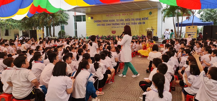 Thực hiện Đề án “Nâng cao năng lực khám chữa bệnh răng hàm mặt và dự phòng bệnh răng miệng cộng đồng giai đoạn 2021-2030” Ban hành kèm theo Quyết định số 5628/QĐ-BYT ngày 09 tháng 12 năm 2021 của Bộ trưởng Bộ Y tế. Sáng ngày 21/4/2023 tại trường Tiểu học Trần Văn Ơn, quận Hồng Bàng, Hải Phòng, Sở Giáo dục và Đào tạo phối hợp với Bệnh viện răng hàm mặt Trung ương Hà Nội tổ chức chương trình truyền thông khám, điều trị, tư vấn chăm sóc sức khỏe răng miệng cho học sinh tiểu học.