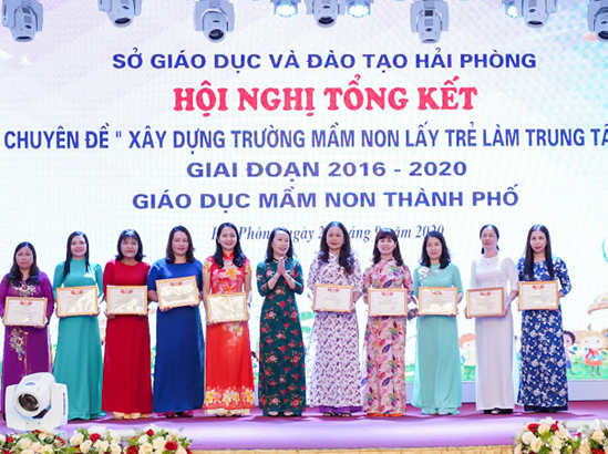 Hội nghị được nghe các báo cáo Tổng kết năm học 2019-2020, triển khai phương hướng, nhiệm vụ năm học 2020-2021 và Báo cáo Tổng kết chuyên đề “Xây dựng trường mầm non lấy trẻ làm trung tâm” giai đoạn 2016-2020 và 02 tham luận của đơn vị cơ sở về “Các giải pháp huy động trẻ mầm non đến trường tại huyện An Lão thành phố Hải Phòng” và “Các giải pháp tham mưu quy hoạch mở rộng quy mô trường lớp mầm non trên địa bàn quận Kiến An”. Hội nghị cũng tri ân các đồng chí là Lãnh đạo, chuyên viên phòng GD&ĐT phụ trách mầm non có quyết định nghỉ hưu năm học 2019-2020 và vinh danh 20 tập thể và 50 cá nhân có thành tích xuất sắc trong thực hiện chuyên đề “Xây dựng trường mầm non lấy trẻ làm trung tâm” giai đoạn 2016-2020.
