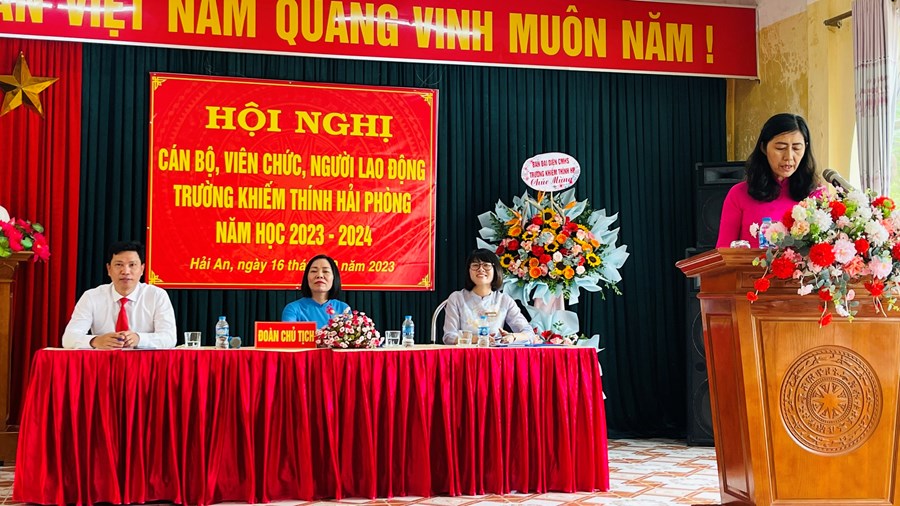 Tham dự Hội nghị cán bộ, viên chức và người lao động của nhà trường có bà Trần Thu Hằng – Trưởng phòng Giáo dục Tiểu học, Sở Giáo dục và Đào tạo; đại diện cán bộ công đoàn ngành giáo dục Hải Phòng; đại diện Ban chi hội nhà trường và 34 cán bộ giáo viên và người lao động toàn trường.