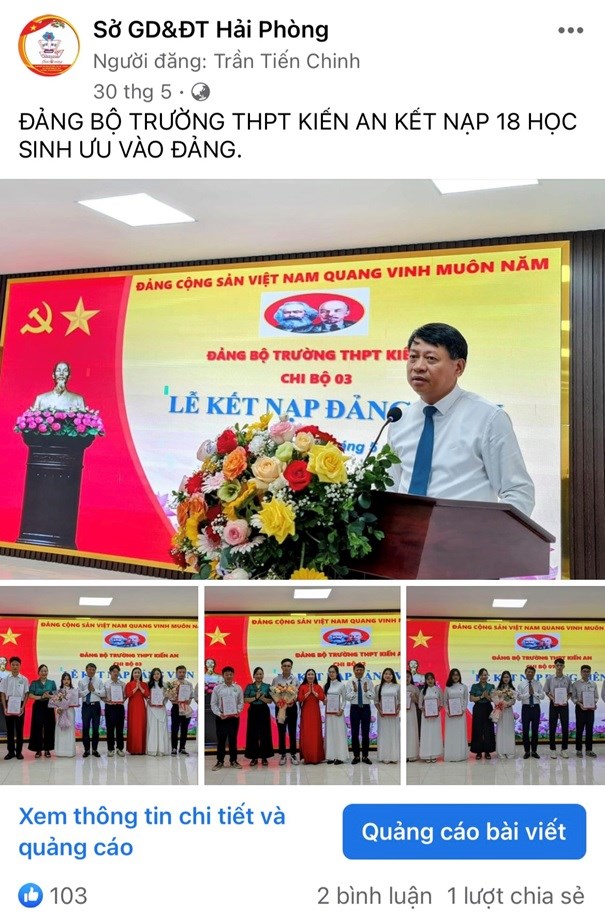 Đảng bộ Trường THPT Kiến An kết nạp 18 học sinh vào Đảng năm 2023