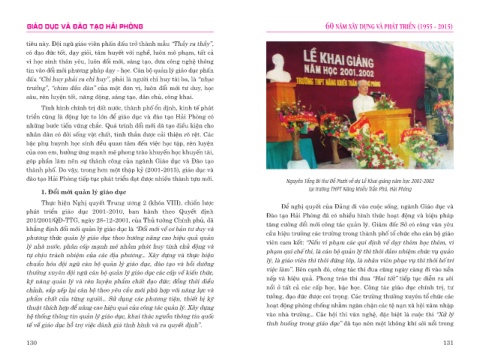 đào tạo Hải Phòng tiếp tục phát triển đạt được nhiều thành tựu mới. Nguyên Tổng Bí thư Đỗ Mười về dự Lễ Khai giảng năm học 2001-2002
