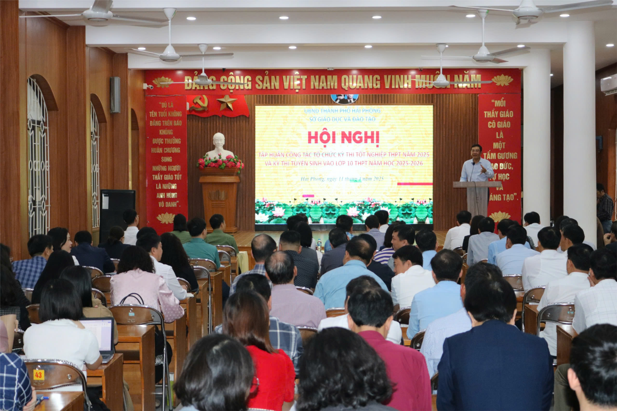 Đồng chí Bùi Khánh Toàn, Trưởng Phòng Quản lý chất lượng (Sở GD-ĐT) tập huấn về công tác tổ chức Kỳ thi tốt nghiệp THPT.
