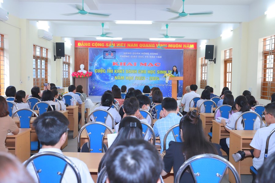 Phát biểu khai mạc, bà Nguyễn Thị Vân Anh, Trưởng phòng, Phòng GDĐT quận Hồng Bàng khẳng định: Đây là cuộc thi thường niên được tổ chức với mục đích khuyến khích các em học sinh quan tâm đến các vấn đề của cuộc sống, liên hệ kiến thức học được ở trường phổ thông với thực tế sinh động của thế giới tự nhiên và xã hội, rèn luyện kĩ năng vận dụng kiến thức tổng hợp để giải quyết các vấn đề thực tiễn; góp phần giáo dục STEM và tạo nền tảng cho các hoạt động khởi nghiệp cho tương lai. Điều này có ý nghĩa quan trọng trong tiến trình đổi mới giáo dục phổ thông, yêu cầu người học và người dạy đều phải thay đổi cách học, cách dạy; nhà trường phải thay đổi cách đánh giá kết quả học tập và rèn luyện của học sinh, đưa kiến thức đến gần hơn với đời sống để mỗi học sinh không chỉ là người học mà còn là người có khả năng nghiên cứu và sáng tạo.