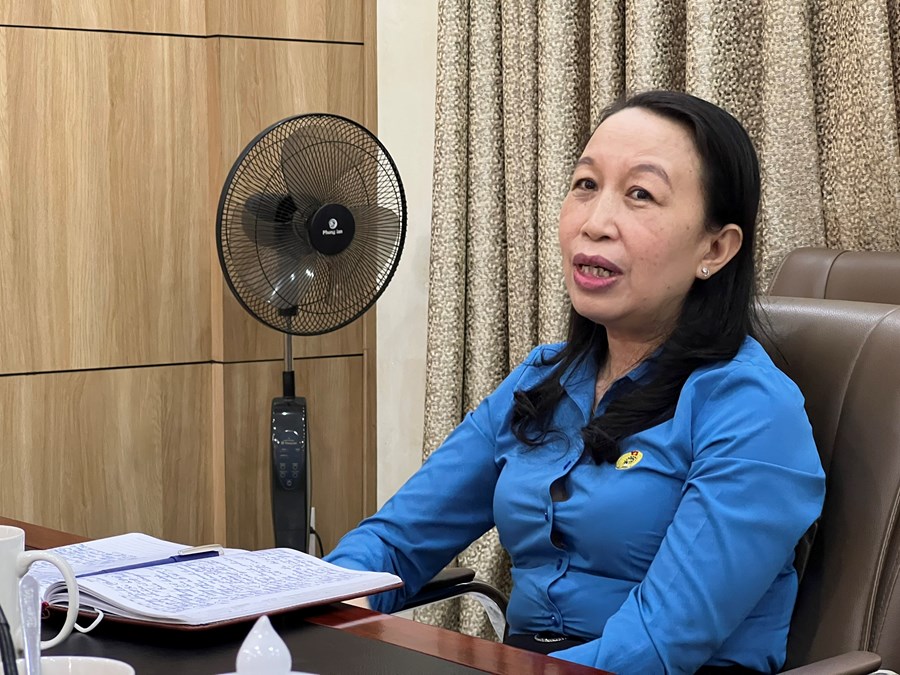 Đồng chí Lâm Tuyết Trinh, Chủ tịch Công đoàn ngành giáo dục phát biểu tại buổi tiếp công dân