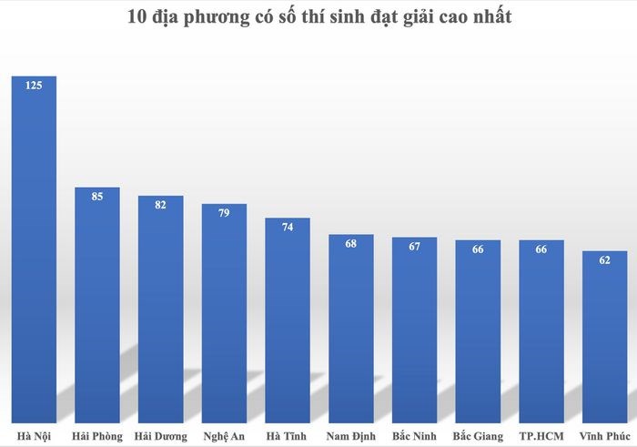 Thành tích học sinh giỏi quốc gia 2022 của thành phố Hải Phòng xếp sau Hà Nội (địa phương có 2 trường THPT chuyên). Tiếp sau Hải Phòng là Hải Dương 82, Nghệ An 79, Hà Tĩnh 74 thí sinh đạt giải.
