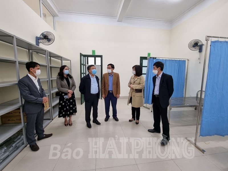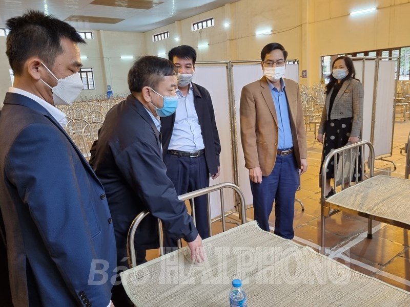 Tại điểm tiêm Trường THPT Mạc Đĩnh Chi, lãnh đạo 2 ngành đề nghị nhà trường, Bệnh viện Kiến An chuẩn bị thêm đệm giường phục vụ trường hợp có phản ứng phản vệ sau tiêm.