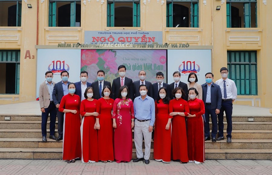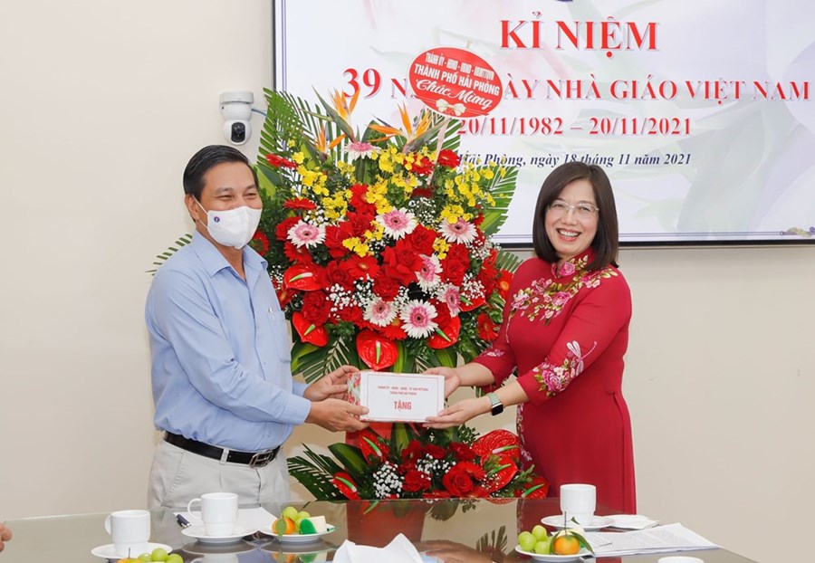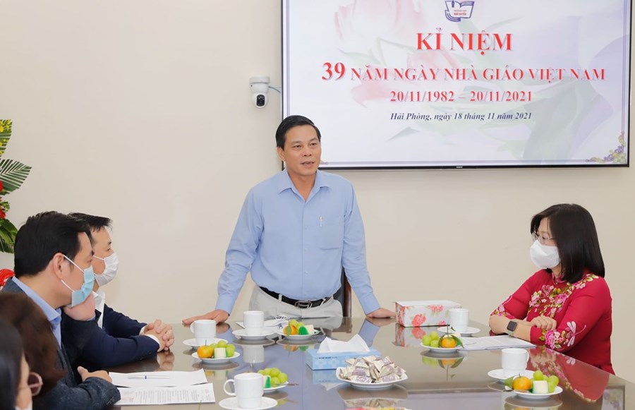 (Haiphong.gov.vn) - Nhân dịp kỷ niệm 39 năm ngày Nhà giáo Việt Nam (20/11/1982 - 20/11/2021), chiều 18/11, đồng chí Nguyễn Văn Tùng, Phó Bí thư Thành ủy, Chủ tịch UBND thành phố đi thăm, chúc mừng Trường Trung học phổ thông Ngô Quyền. Cùng đi có đại diện Ban Tuyên giáo Thành ủy, Văn phòng UBND thành phố, lãnh đạo quận Lê Chân.