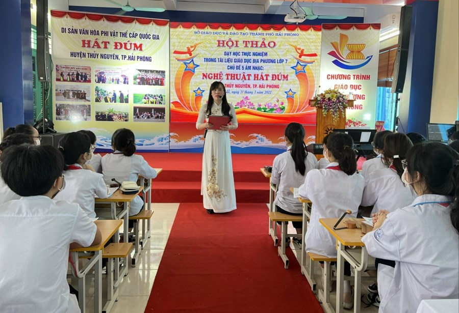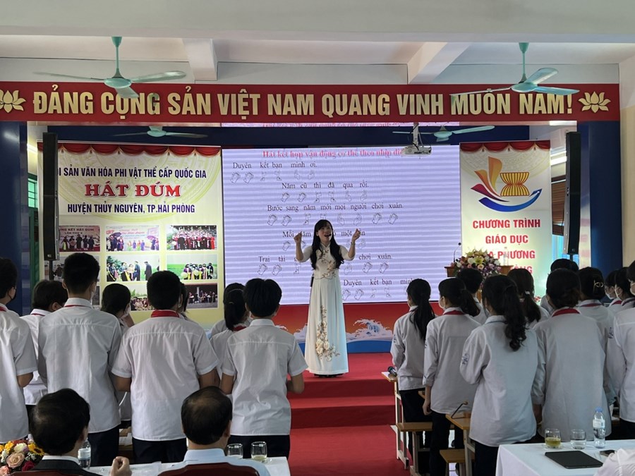 PGS.TS. NGƯT. Nhạc sĩ Phạm Trọng Toàn, Phó Chủ tịch Hội đồng thẩm định sách quốc gia Việt Nam chia sẻ: “việc dạy học thực nghiệm giờ Âm nhạc hôm nay rất ý nghĩa phục vụ cho công tác giảng dạy trong chương trình GDPT 2018 vào năm học 2022-2023. Hải Phòng mạnh dạn đưa Nghệ thuật hát Đúm vào giảng dạy là cần thiết, ý nghĩa, mang tính khả thi cao. Bởi tài liệu được biên soạn không chỉ mang tính lịch sử, đặc trưng của người Hải Phòng mà tài liệu còn có cả ghi âm, kí âm nghệ nhân hát là một đặc trưng không thể lẫn. Mặc dù, thể loại dân ca có tính dị bản nhưng việc lưu giữ hồn cốt, âm điệu đặc trưng cốt lỗi của thể loại này các nhà biên soạn sách đã làm được. Qua tiết học này, các tác giả cần lắng nghe những góp ý, ý kiến để có cuốn tài liệu tốt nhất. Giáo viên cần nghiên cứu, học tập để có những giờ giảng hay nhất với học sinh”