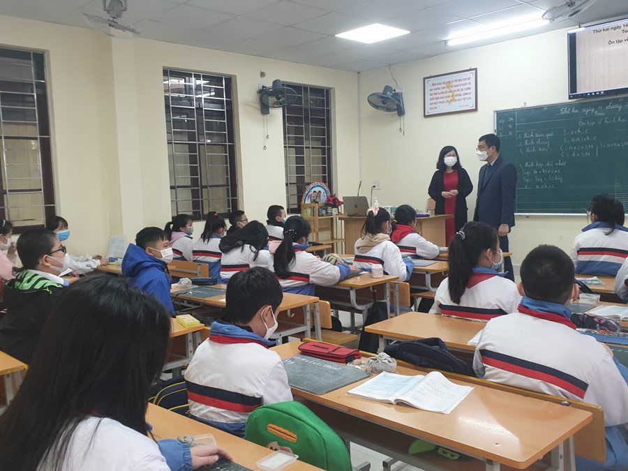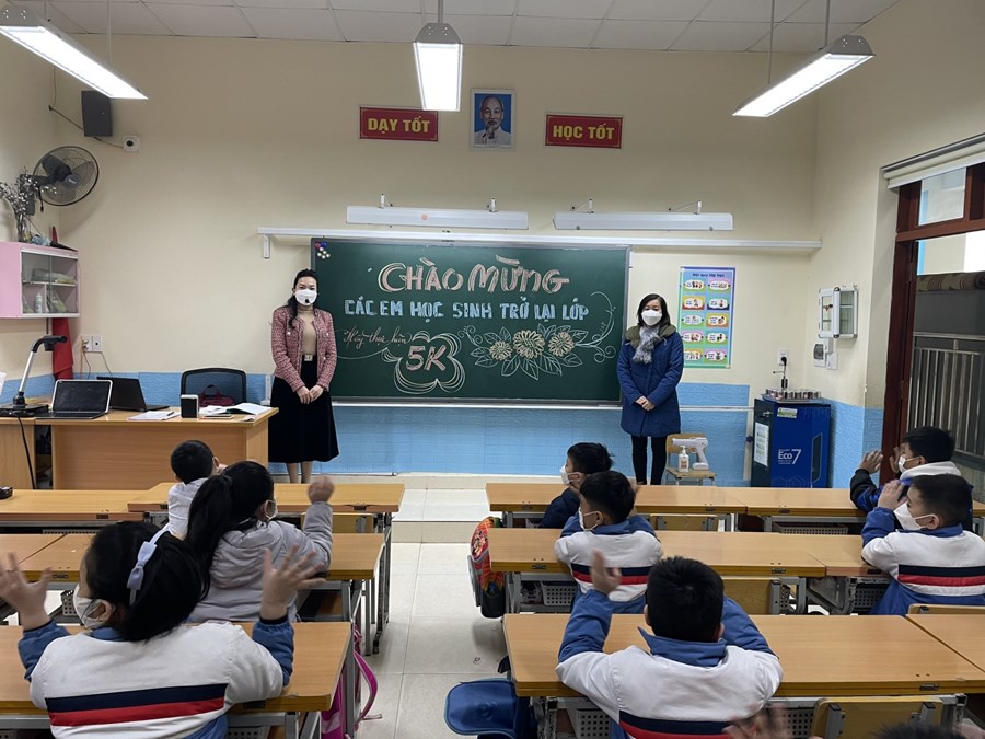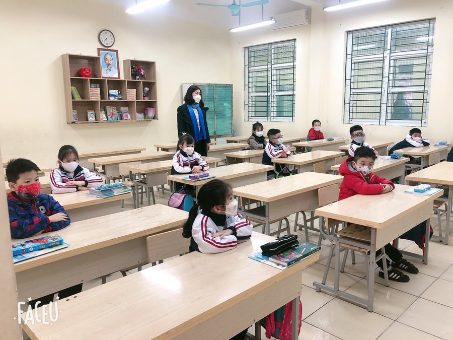 Để mở cửa trường học, các thầy cô đã rà soát từng học sinh. Nếu số lượng học sinh F0 ở một lớp nhiều, các cô khoanh vùng và chuyển dạy học online; trường có giáo viên F0 thì phân công giảng dạy thay hoặc cô dạy online. Khuyến khích các cô trực tuyến trên lớp. Vừa dạy, các cô vừa rà soát kiến thức cho học sinh, qua nắm bắt nếu các cháu không hiểu bài thì sẽ ôn lại online cho các em.