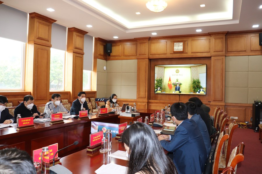 Đồng chí Hoàng Minh Cường, Phó chủ tịch UBND thành phố dự tại điểm cầu Hải Phòng cùng đại diện lãnh đạo các sở, ngành, quận, huyện trên địa bàn thành phố.