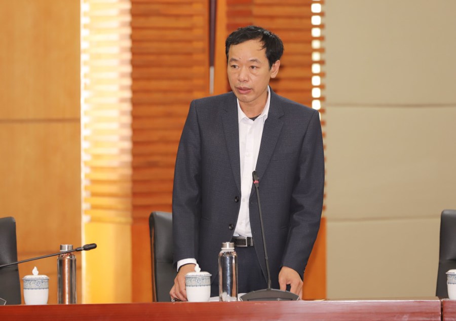 Đồng chí Phạm Quốc Hiệu, Phó Giám đốc Sở Giáo dục và Đào tạo phát biểu tại cuộc họp.