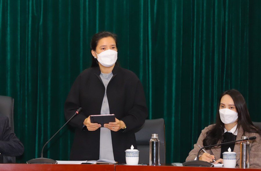 Đồng chí Vương Toàn Thu Thủy, Phó Bí thư Thành đoàn Hải Phòng báo cáo về công tác chuẩn bị Lễ Biểu dương Học sinh, sinh viên xuất sắc tiêu biểu thành phố Hải Phòng năm 2021.