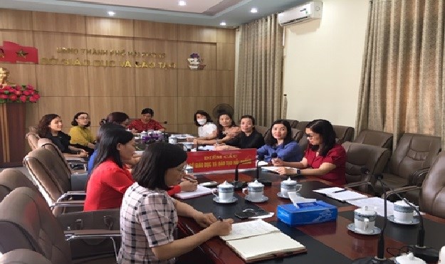 Tham dự tại điểm cầu Sở Giáo dục và Đào tạo Hải Phòng vào chiều ngày 26/4/2022 có các đồng chí: Đỗ Thị Hòa Phó Giám đốc Sở GD&ĐT, các đồng chí lãnh đạo, chuyên viên phòng GDMN cùng đại biểu tại 06 quận, huyện: Hồng Bàng, Ngô Quyền, Lê Chân, Thủy Nguyên, An Dương, Tiên Lãng.