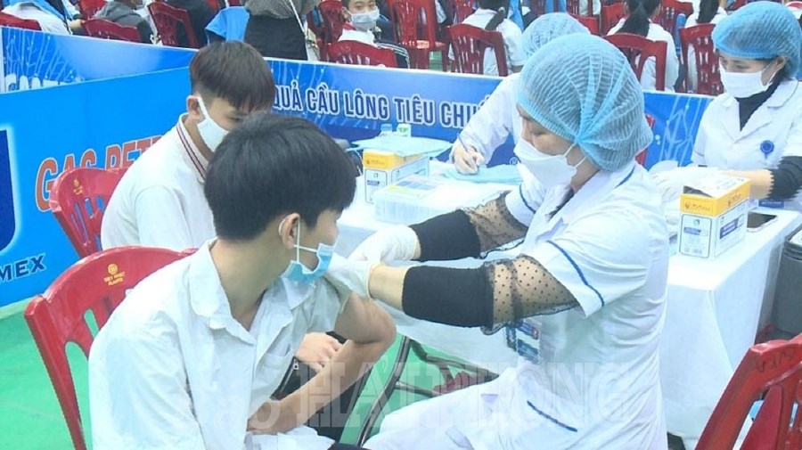 Các học sinh THCS trên địa bàn quận Kiến An được tiêm vaccine phòng COVID-19.