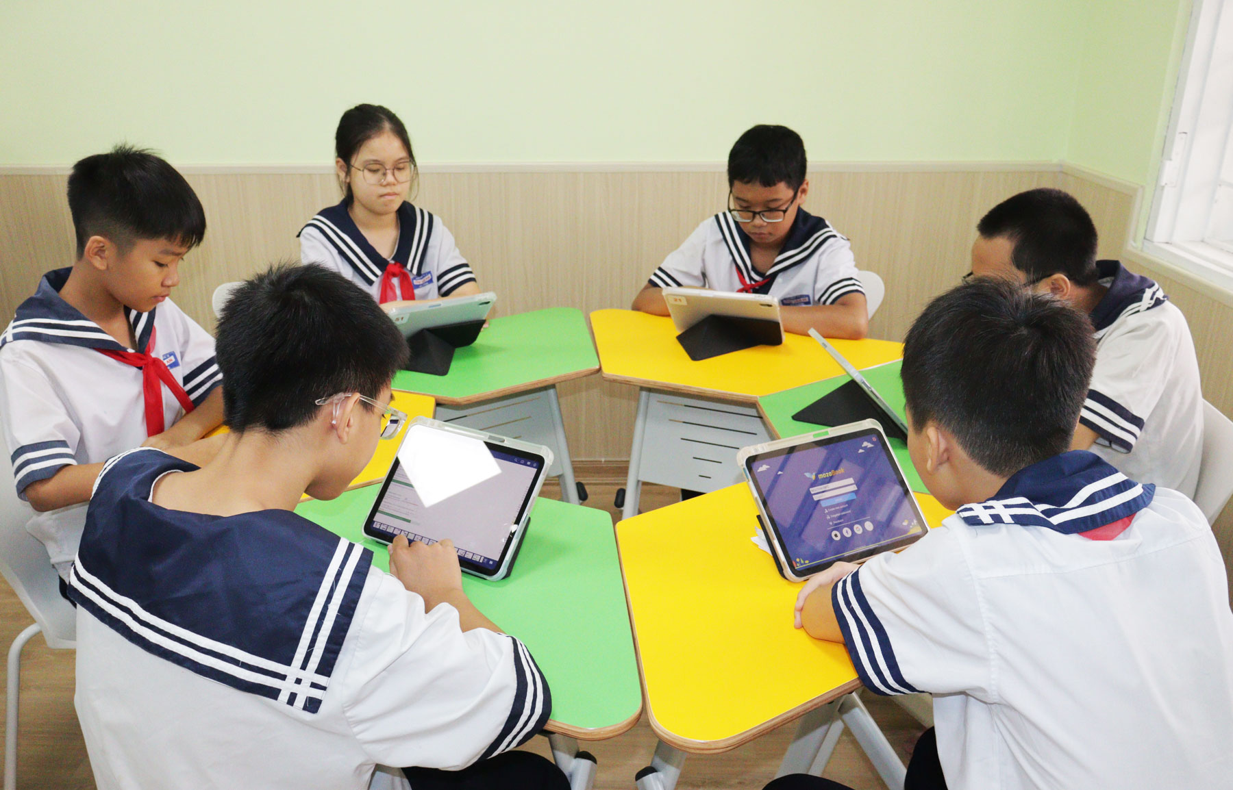 Phòng học giúp học sinh học tập chủ động, sáng tạo, phát triển toàn diện hơn.Cùng với đó là Camera ghi hình/phát trực tuyến bài giảng ghi lại toàn bộ quá trình dạy học, hỗ trợ truyền hình trực tiếp hoặc lưu trữ bài giảng cho học sinh xem lại; phù hợp với dạy học kết hợp và bồi dưỡng giáo viên. Hệ thống âm thanh trợ giảng có khả năng khuếch đại giọng nói giáo viên rõ ràng đến mọi vị trí trong lớp, giảm mệt mỏi khi giảng dạy và tăng hiệu quả tiếp nhận của học sinh. Hệ thống router wifi và chuyển mạng khắc phục hạn chế đường truyền truyền thống, đảm bảo tốc độ cao cho toàn bộ phòng học, phục vụ cho kết nối Internet, truyền dữ liệu không dây, học tập trực tuyến.