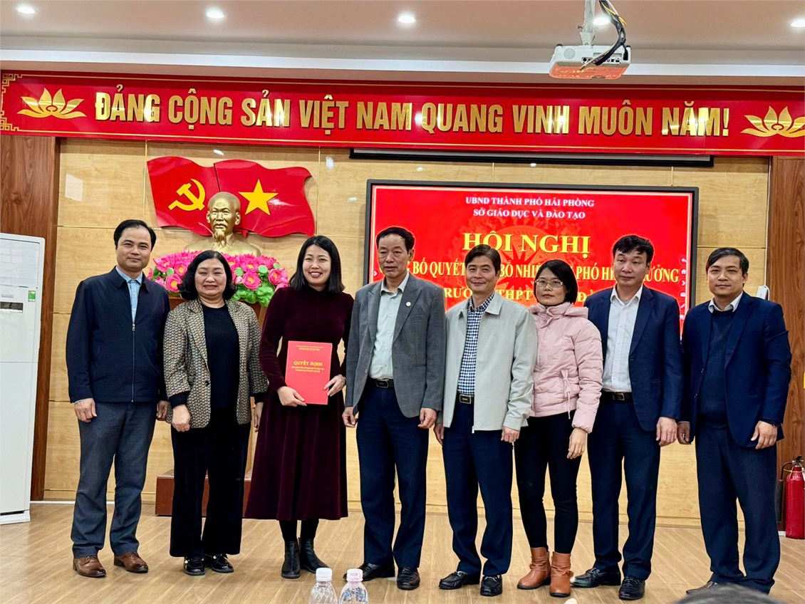 Thừa ủy quyền của Ban Giám dốc, đồng chí Đặng Vũ Thắng - Trưởng phòng Tổ chức cán bộ công bố quyết định của Giám đốc sở quyết định bổ nhiệm lại chức danh phó hiệu trưởng trường THPT Bạch Đằng nhiệm kỳ 2025-2030 đối với đồng chí Lê Thị Hải Thành.